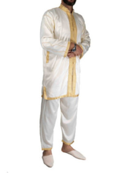 Jabador homme 2 Pièces - Blanc cassé et Broderie Crème