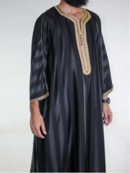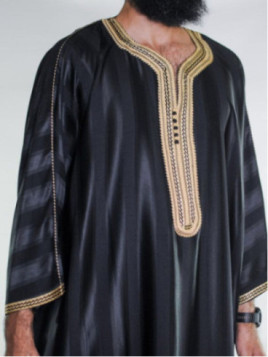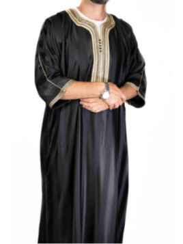 Gandoura marocaine jawhara - Noir / Broderie Doré