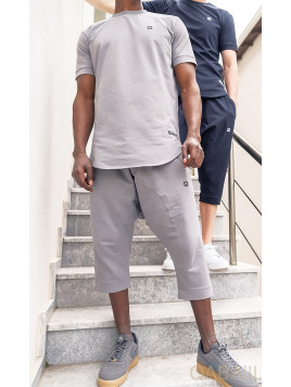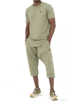 Ensemble Nautik - Qaba'il ENSEMBLE PANTACOURT ET T-SHIRT TISSU JOGGING LÉGER COULEUR UNIE T-SHIRT À MANCHES COURTES SAROUEL AVEC 2 POCHES DEVANT