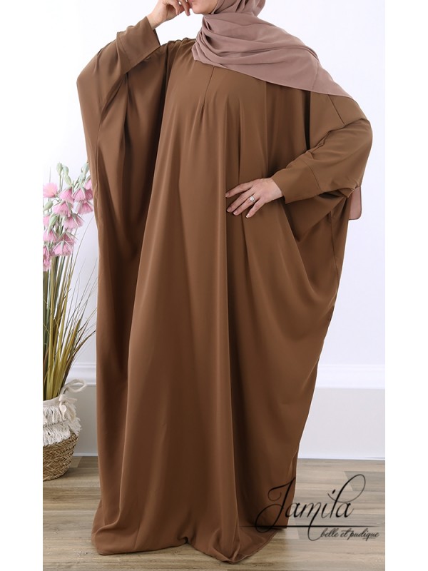 Abaya papillon marron clair 2569 - tissu microfibre - Jamila