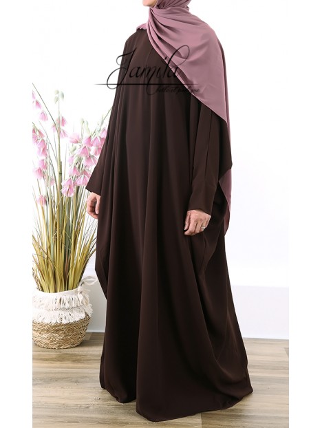 Abaya papillon marron foncé 293 - microfibre - Jamila