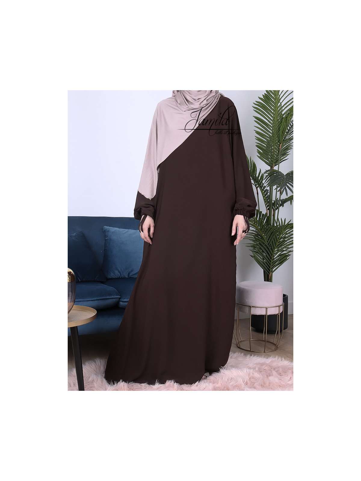 Abaya Simple Marron foncé 293 - tissu microfibre - Jamila