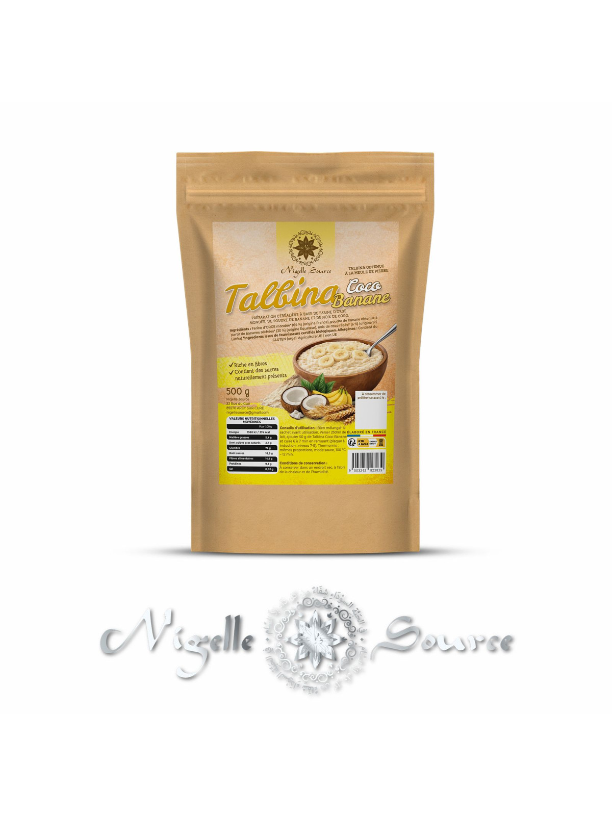 Talbina coco banane - Talbina à la coco et banane bio 500gr - Nigelle Source