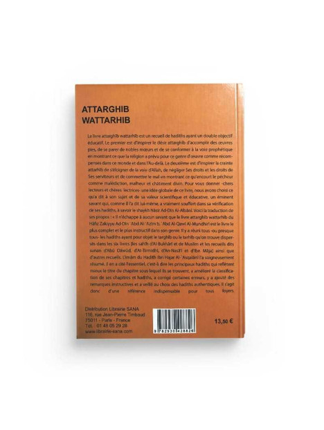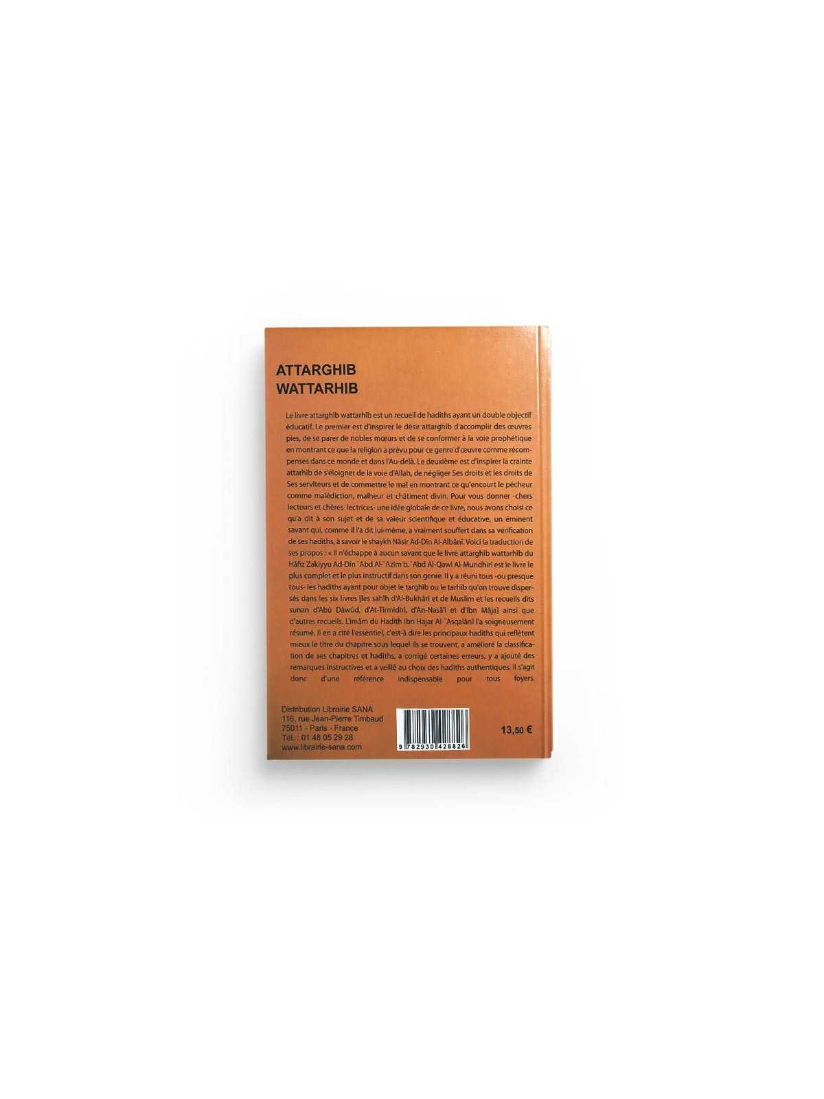 Le livre attarghib wattarhib est un recueil de hadiths ayant un double objectif éducatif. Le premier est d'inspirer le désir attarghîb d'accomplir des œuvres pies, de se parer de nobles mœurs et de se conformer à la voie prophétique en montrant ce que la religion a prévu pour ce genre d'œuvre comme récompenses dans ce monde et dans l'Au-delà. Le deuxième est d'inspirer la crainte attarhîb de s'éloigner de la voie d'Allah, de négliger Ses droits et les droits de Ses serviteurs et de commettre le mal en montrant ce qu'encourt le pécheur comme malédiction, malheur et châtiment divin. Pour vous donner chers lecteurs et chères lectrices une idée globale de ce livre , nous avons choisi ce qu'a dit à son sujet et de sa valeur scientifique et éducative, un éminent savant qui comme il l'a dit lui-même, a vraiment souffert dans sa vérification de ses hadîths à savoir le shaykh Nasir Ad-Din Al-Albani. Voici la traduction de ses propos: "Il n'échappe à aucun savant que le livre attarghîb wattarhîb du Hafiz Zakiyyu Ad-Din 'Abd Al-Azim b. 'Abd Al-Qawî Al-Mundhirî est le livre le plus complet et le plus instructifs dans son genre. Il y a réuni tous ou presque tous les hadîths ayant pour objet le targhib ou le tarhîb qu'on trouve dispersés dans les six livres [ les sahih Al-Bukhari et de Muslim et les recueils dits sunan d'Abu Dawûd, d'At-Tirmidhi, d'An-Nasa'i et d'Ibn Maja] ainsi que d'autres recueils. L'imam du Hadith Ibn Hajar Al-'Asqâlani l'a soigneusement résumé. Il en a cité l'essentiel, c'est-à-dire les principaux hadiths qui reflètent mieux le titre du chapitre sous lequel ils se trouvent, a amélioré la classification de ses chapitres et hadiths, a corrigé certaines erreurs, y ajouté des remarques instructives et a veillé au choix des hadiths authentiques. Il s'agit donc d'une référence indispensable pour tous foyers.