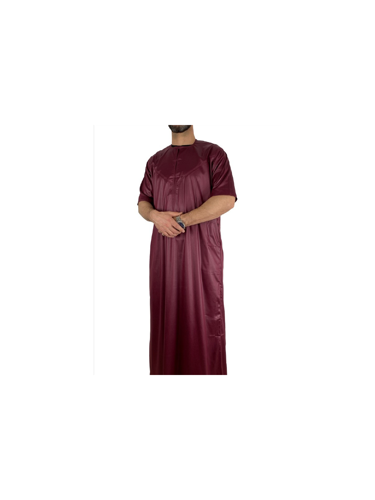 Qamis Emirati manches courtes Bordeaux - Satiné Precious