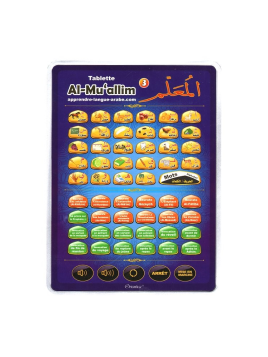 Tablette électronique parlante "Al-Mu'allim 3", permet à votre enfant d'apprendre les rudiments de la langue arabe. Il se familiarisera notamment avec les lettres de l'alphabet arabe et découvrira les noms de quelques animaux, ainsi que d'objets de la vie quotidienne.