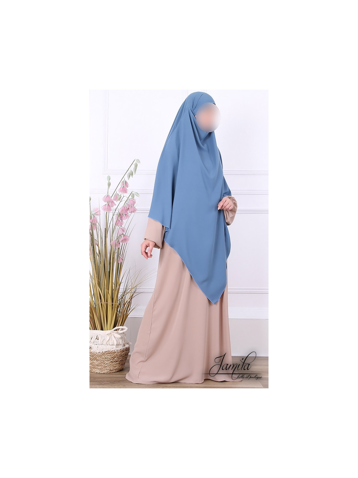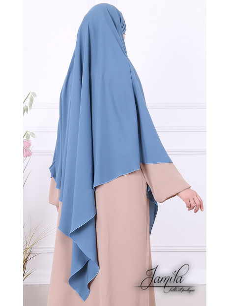 Khimar 1 voile Bleu jean - Tissu Microfibre