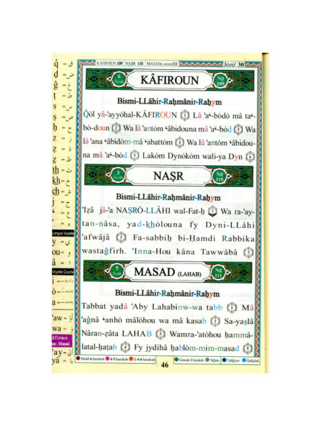 Coran juzz Amma et Tabarak tajwid - Arabe/Phonétique/Français - Chapitre 29 & 30