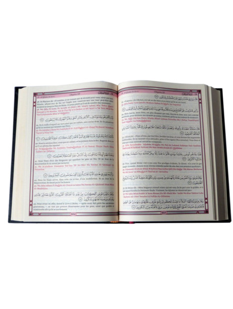 Le Saint Coran Ar/Fr/Phonétique - noire avec arabesques bordeaux - Orientica