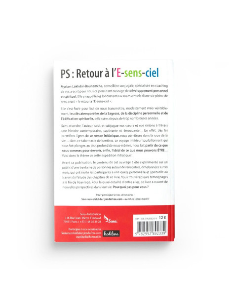 Myriam Lakhdar Bounamcha, conseillère conjugale, spécialisée en coaching de vie, a écrit pour nous ce percutant ouvrage de développement personnel et spirituel. Elle y rappelle les fondamentaux ou essentiels d'une vie pleine de sens avant « le retour à l'E-sens-ciel ».