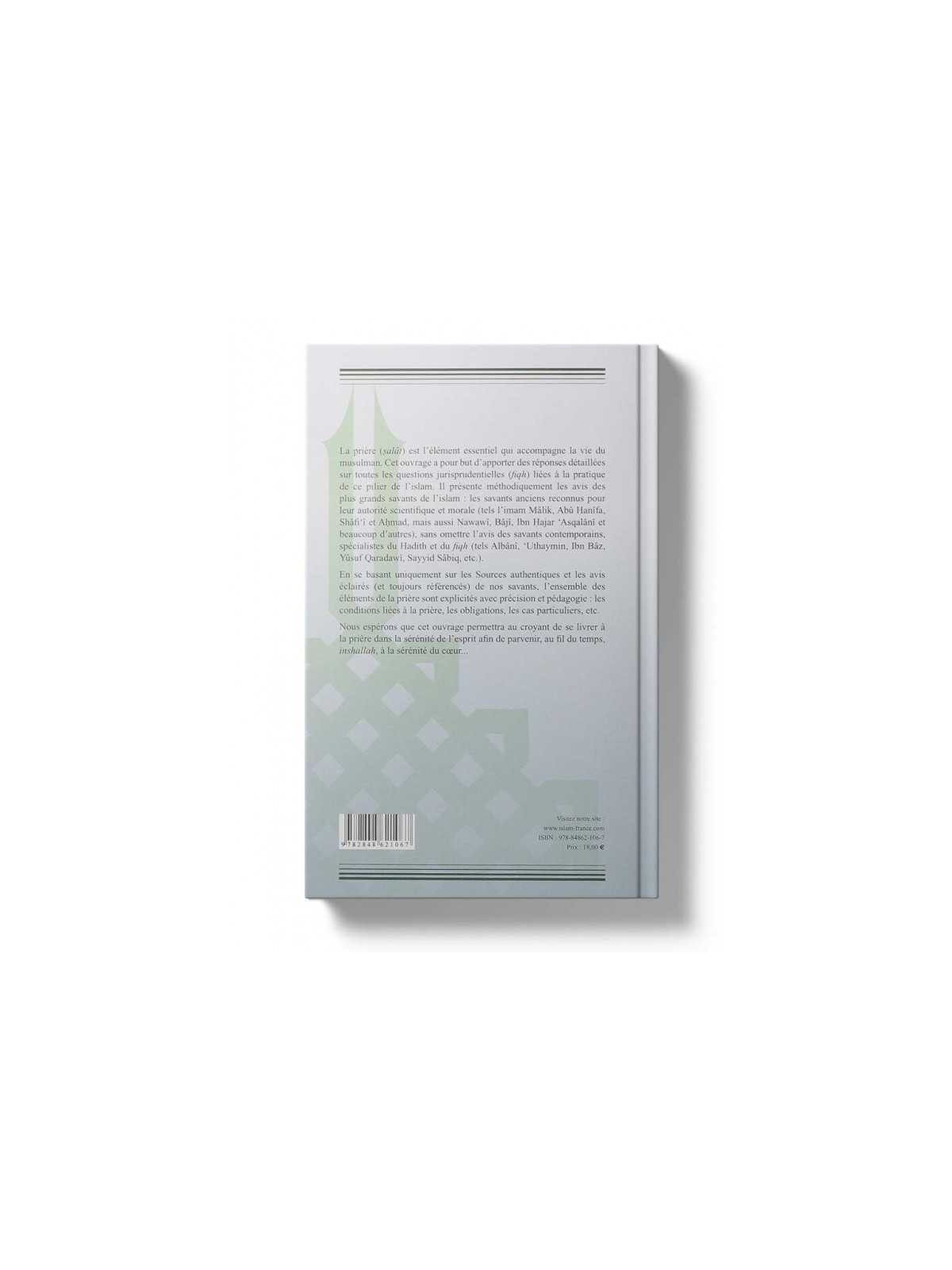 " La prière (salât) est l’élément essentiel qui accompagne la vie du musulman. Cet ouvrage a pour but d’apporter des réponses détaillées sur toutes les questions jurisprudentielles (fiqh) liées à la pratique de ce pilier de l’islam. Il présente méthodiquement les avis des plus grands savants de l’islam : les savants anciens reconnus pour leur autorité scientifique et morale (tel l’imam Mâlik, Abû Hanîfa, Shâfi’î et Ahmad, mais aussi Nawawî, Bâjî, Ibn Hajar ‘Asqalânî et beaucoup d’autres), sans omettre l’avis des savants contemporains, spécialistes du Hadith et du fiqh (tels Albânî, ‘Uthaymin, Ibn Bâz, Yûsuf Qaradawî, Sayyid Sâbiq, etc.).