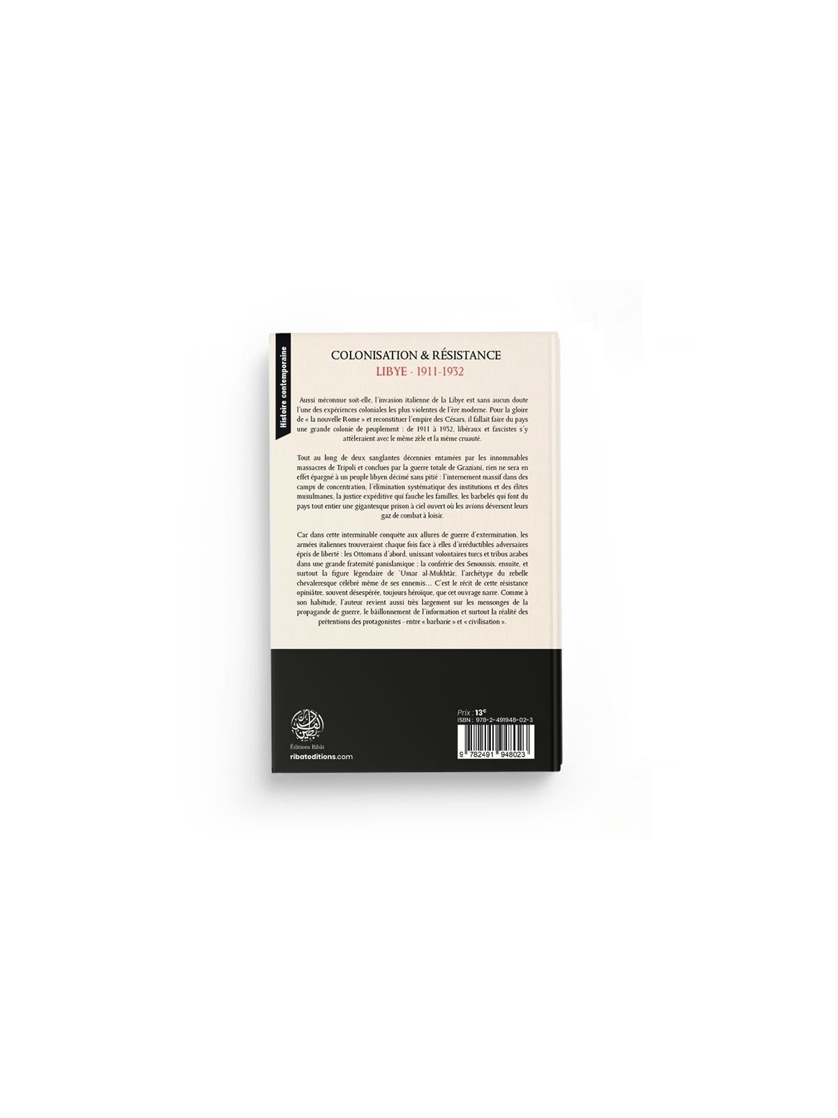 Car dans cette interminable conquête aux allures de guerre d’extermination, les armées italiennes trouveraient chaque fois face à elles d’irréductibles adversaires épris de liberté : les Ottomans d’abord, unissant volontaires turcs et tribus arabes dans une grande fraternité panislamique ; la confrérie des Senoussis, ensuite, et surtout la figure légendaire de ‘Umar al-Mukhtâr, l’archétype du rebelle chevaleresque célébré même de ses ennemis… C’est le récit de cette résistance opiniâtre, souvent désespérée, toujours héroïque, que cet ouvrage narre. Comme à son habitude, l’auteur revient aussi très largement sur les mensonges de la propagande de guerre, le bâillonnement de l’information et surtout la réalité des prétentions des protagonistes – entre « barbarie » et « civilisation ».