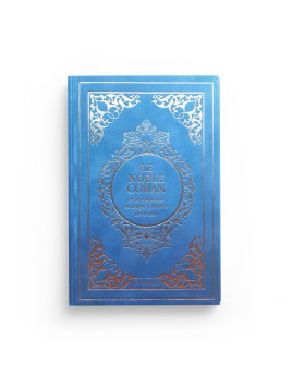 Le Noble Coran et la traduction en langue française de ses sens - Edition de luxe couverture en daim - Bleu Turquoise dorée