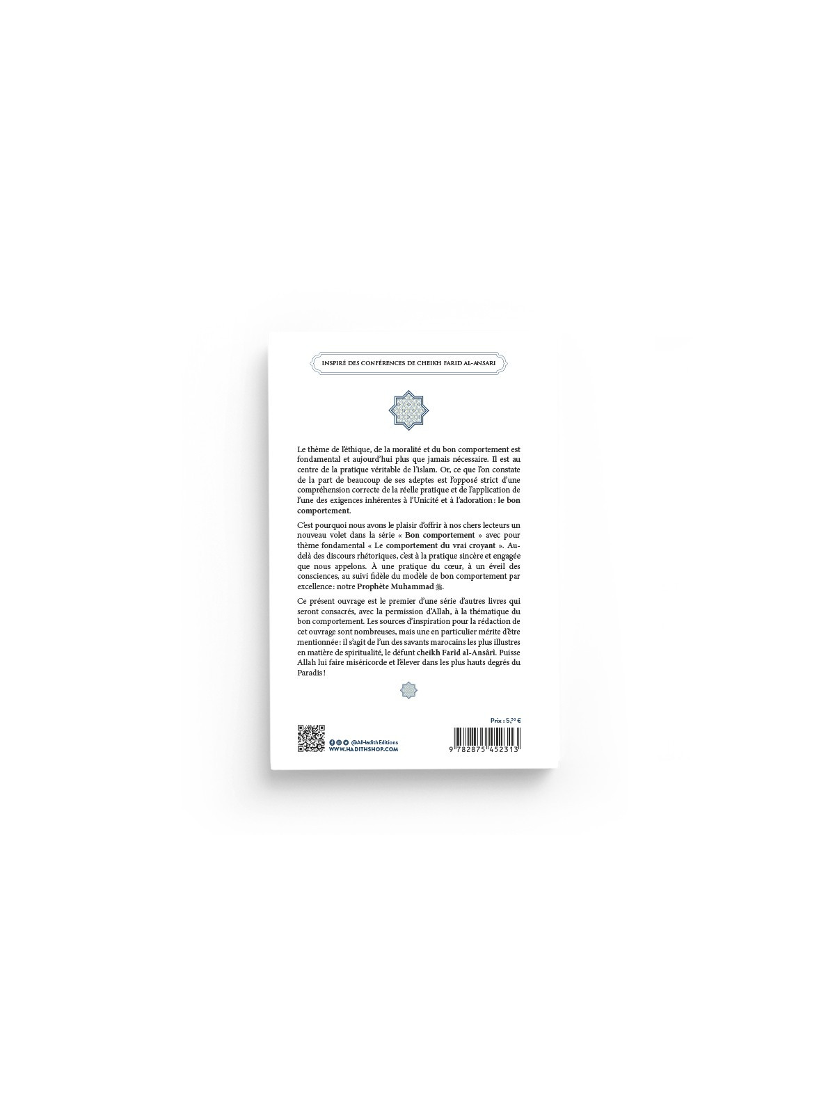 Ce présent ouvrage est le premier d’une série d’autres livres qui seront consacrés, avec la permission d’Allah, à la thématique du bon comportement. Les sources d’inspiration pour la rédaction de cet ouvrage sont nombreuses, mais une en particulier mérite d’être mentionnée : il s’agit de l’un des savants marocains les plus illustres en matière de spiritualité, le défunt cheikh Farîd al-Ansârî. Puisse Allah lui faire miséricorde et l’élever dans les plus hauts degrés du Paradis !