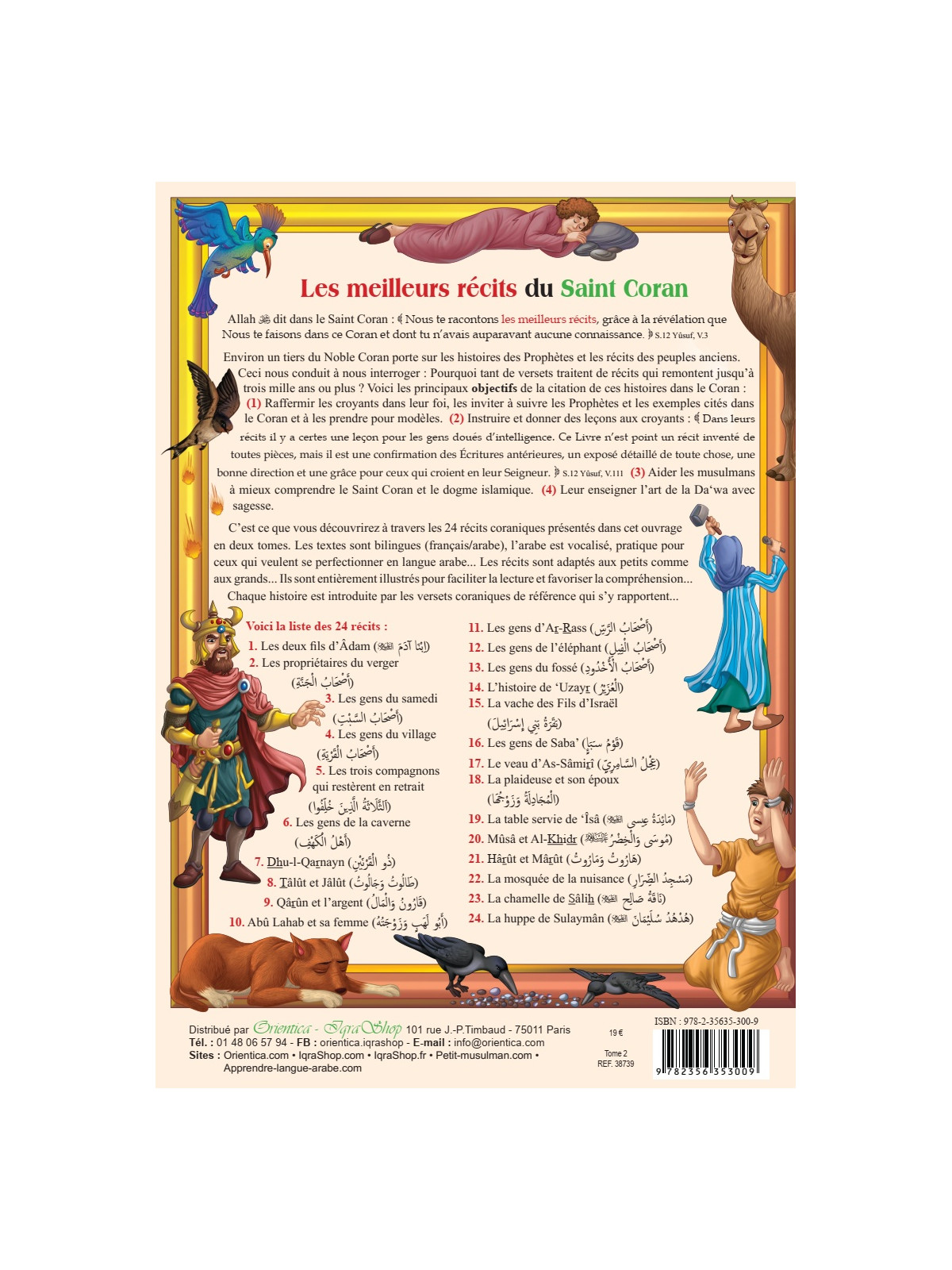 C’est ce que vous découvrirez à travers les 24 récits de ce magnifique ouvrage en deux tomes (chaque tome est indépendant et vendu séparément). Les textes sont bilingues (français/arabe), l’arabe est vocalisé, pratique pour ceux qui veulent se perfectionner en langue arabe... Les récits sont adaptés aux petits comme aux grands... Ils sont entièrement illustrés pour faciliter la lecture et favoriser la compréhension... Chaque histoire est introduite par les versets coraniques de référence qui s’y rapportent...