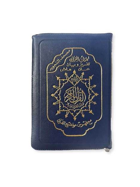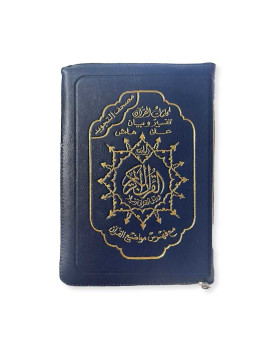 Le Saint Coran Tajwid Pochette Zippée en Cuir bleu marine 14*20