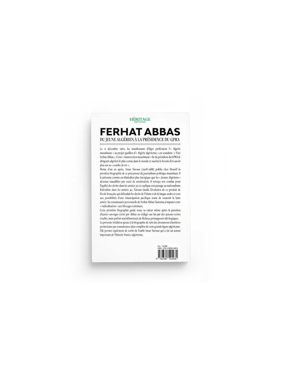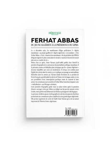 Ferhat Abbas (1899-1985) : du jeune algérien à la présidence du GPRA - Amar Naroun - Editions Héritage