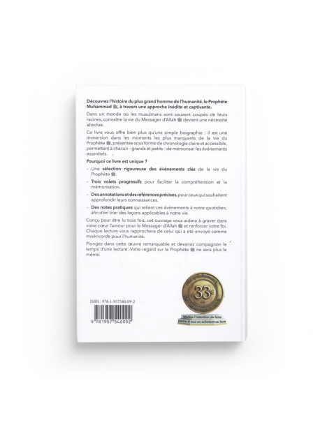 Ce livre vous offre bien plus qu'une simple biographie : il est une immersion dans les moments les plus marquants de la vie du Prophète, présentée sous forme de chronologie claire et accessible, permettant à chacun - grands et petits - de mémoriser les événements essentiels.
