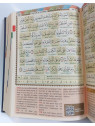 Version avec 1220 pages, grande écriture de l'arabe (grands caractères) et règles de tajwid en couleur.