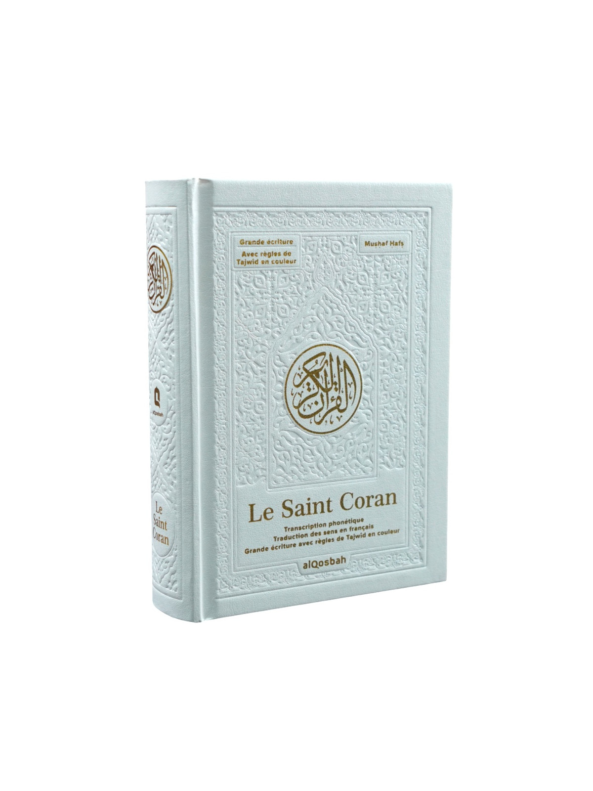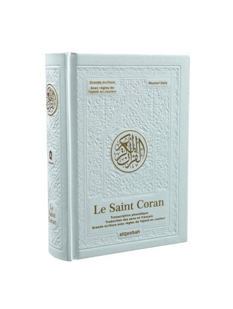 Le Saint Coran avec grands caractères - Français / Phonétique / Règles de Tajwîd - QR Code - Blanc doré 13,5 x 18 cm