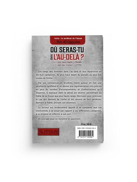 On se demande tous qu’est-ce qui nous arrivera après la mort ? Le livre Où seras-tu dans l'au-delà ? d'Ibn Al-Qayyim répond à cette question importante avec beaucoup de détails. Il décrit notamment les degrés qui séparent le sommet du Paradis du plus bas niveau de l’Enfer. Son ouvrage nous aide ainsi à comprendre notre destin et à réfléchir sur nos actions.