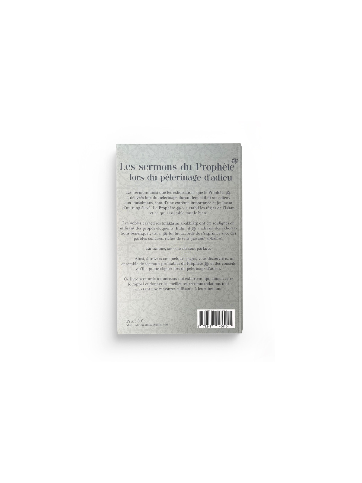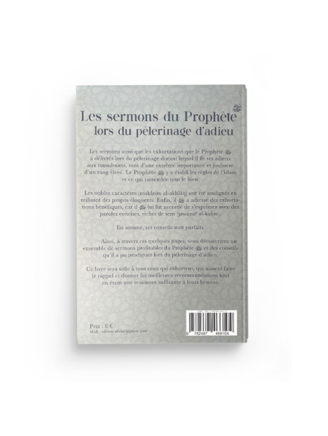 En somme, ses conseils sont parfaits. Ainsi, à travers ces quelques pages, vous découvrirez un ensemble de sermons profitables du Prophète ﷺ et des conseils qu’il a pu prodiguer lors du pèlerinage d’adieu. Ce livre sera utile à tous ceux qui exhortent, qui aiment faire le rappel et donner les meilleures recommandations tout en étant une ressource suffisante à leurs besoins.