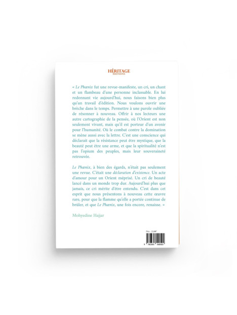 « Le Phœnix fut une revue-manifeste, un cri, un chant et un flambeau d’une personne inclassable. En lui redonnant vie aujourd’hui, nous faisons bien plus qu’un travail d’édition. Nous voulons ouvrir une brèche dans le temps. Permettre à une parole oubliée de résonner à nouveau. Offrir à nos lecteurs une autre cartographie de la pensée, où l’Orient est non seulement vivant, mais qu’il est porteur d’un avenir pour l’humanité. Où le combat contre la domination se mène aussi avec la lettre. C’est une conscience qui déclarait que la résistance peut être mystique, que la beauté peut être une arme, et que la spiritualité n’est pas l’opium des peuples, mais leur souveraineté retrouvée.
