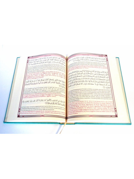 Coran arabe, français ainsi que la transcription en phonétique.
