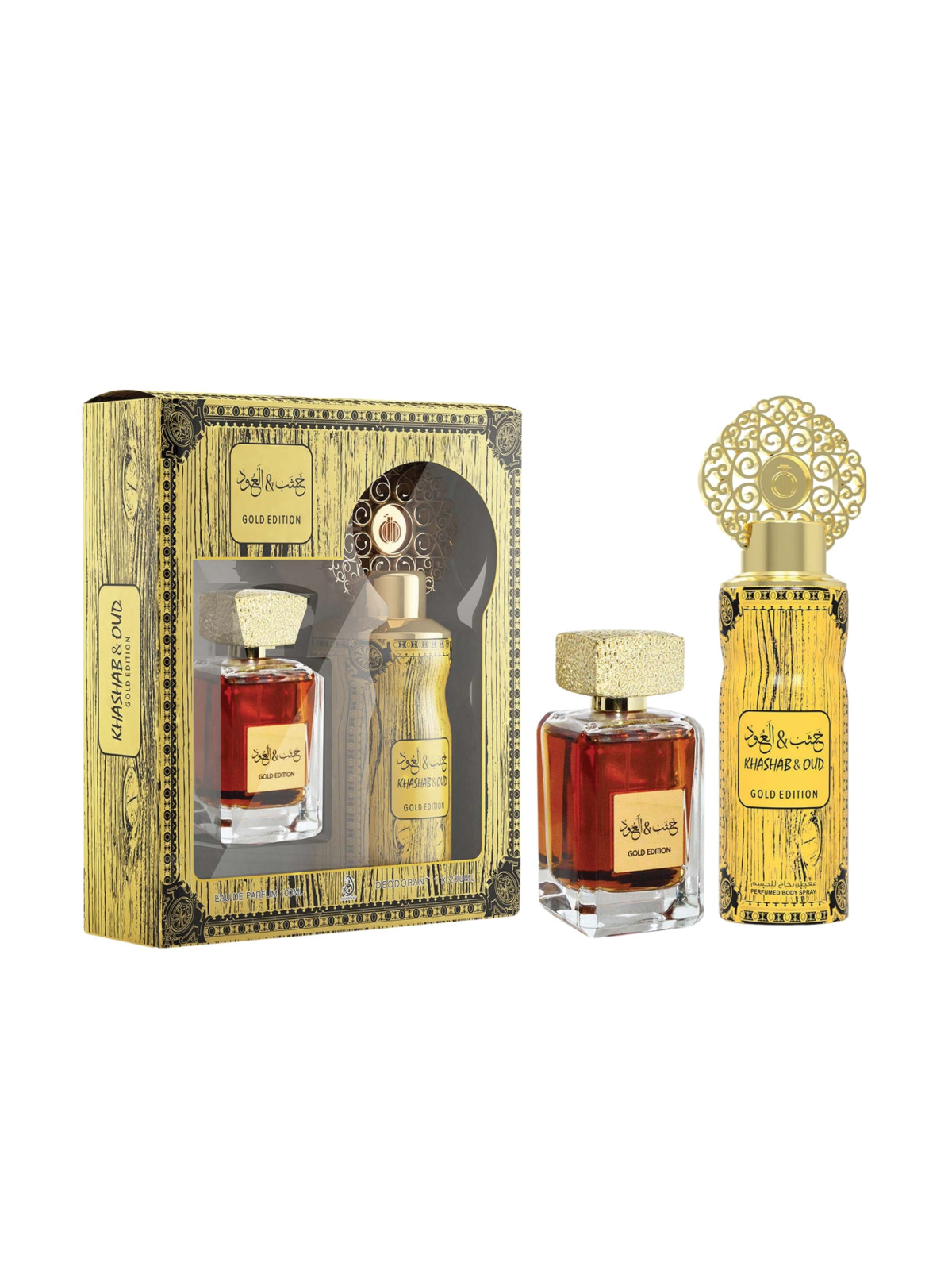 Découvrez notre nouveau coffret Khashab & Oud Gold Edition My Perfumes comprenant :