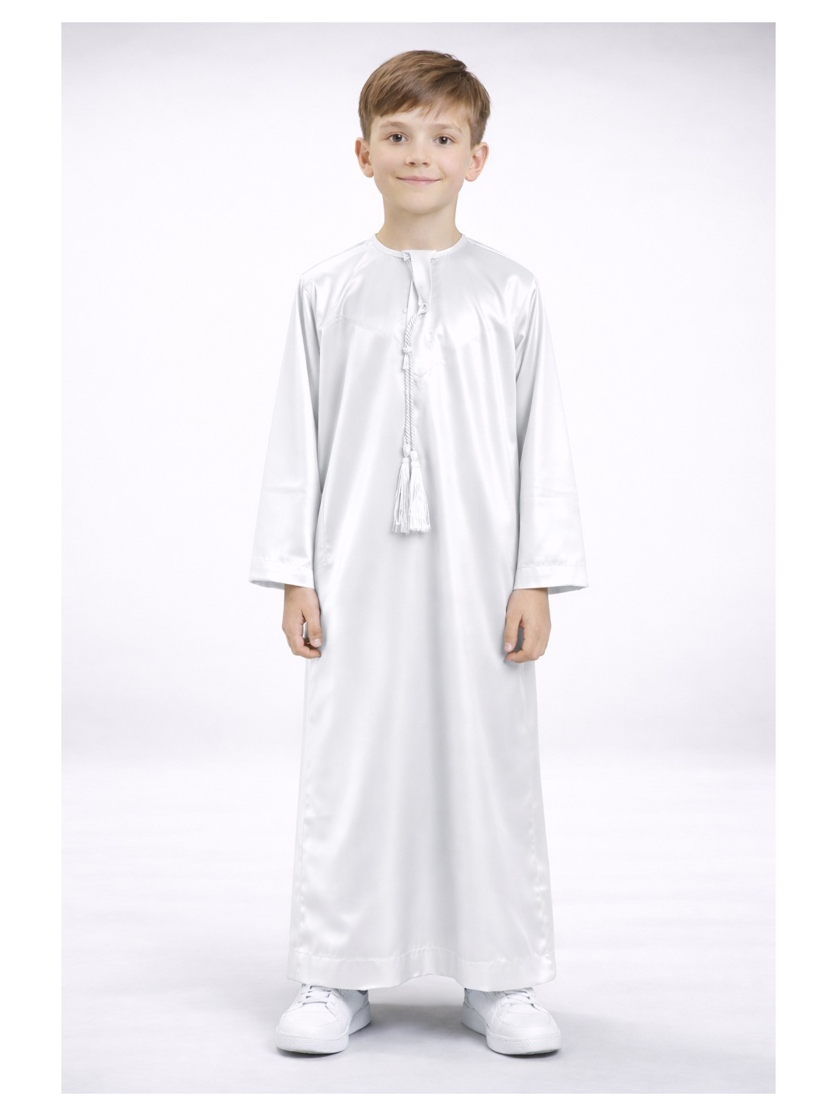 Qamis emirati enfant satiné - Blanc