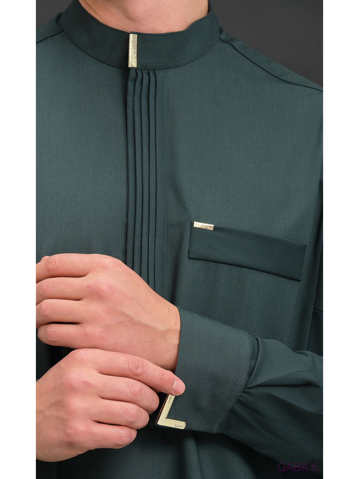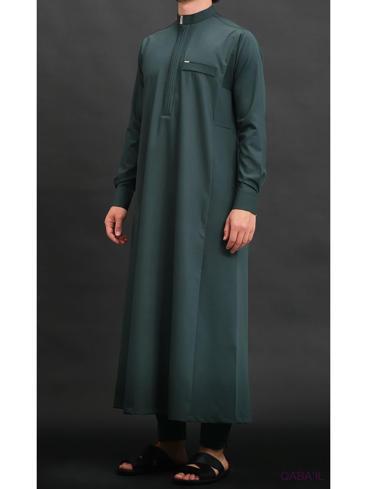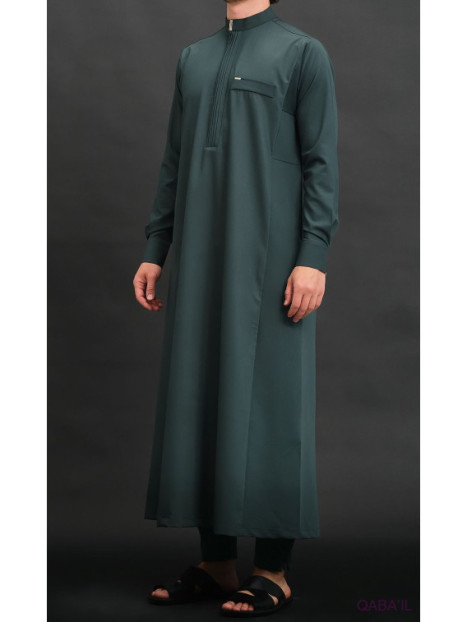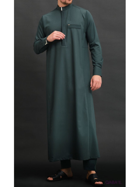 Qamis long Bey vert bouteille 6010 - Qabail