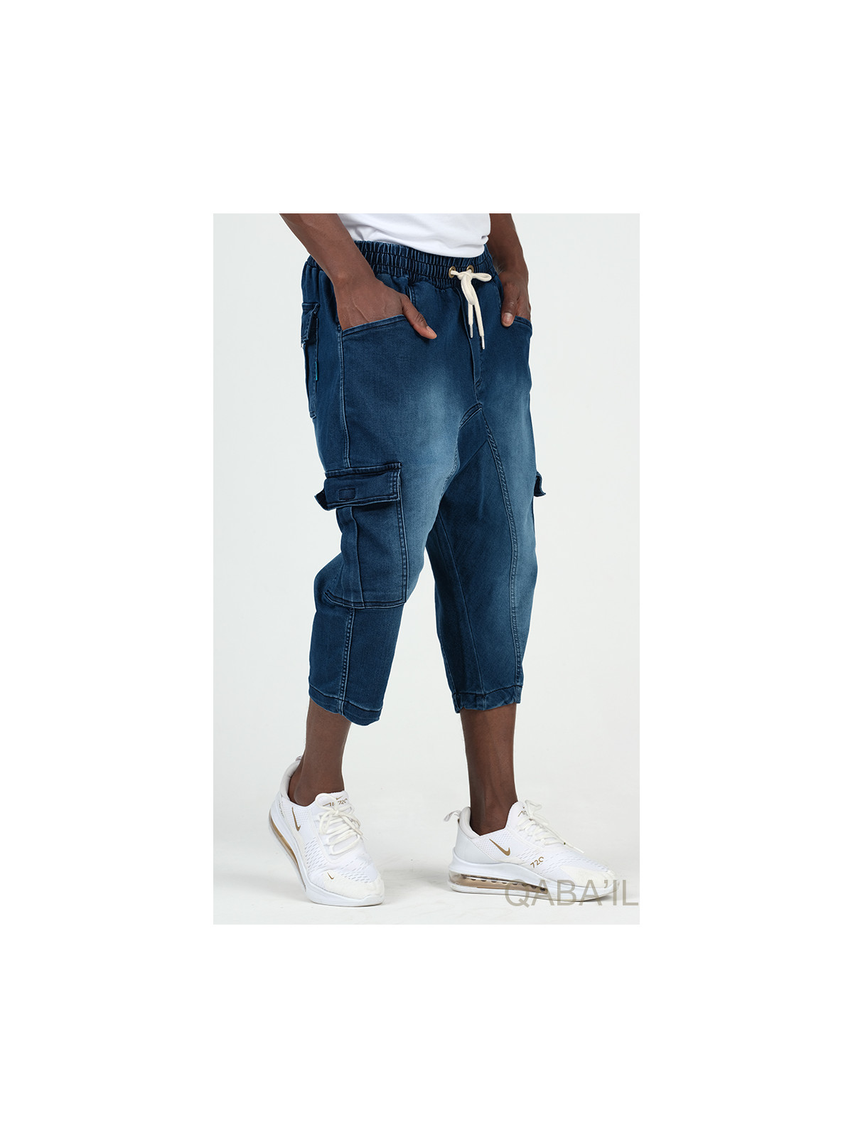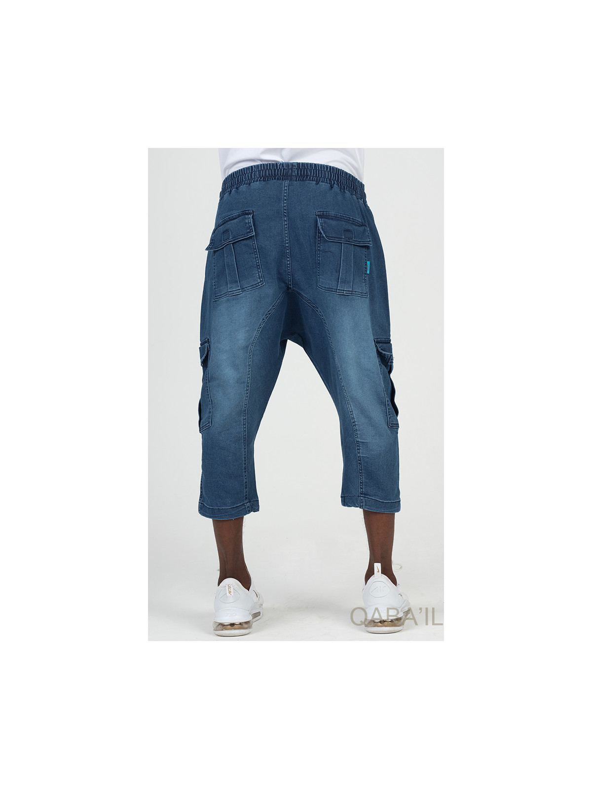 Cargo court jean stretch 9114 bleu brut - Qabail