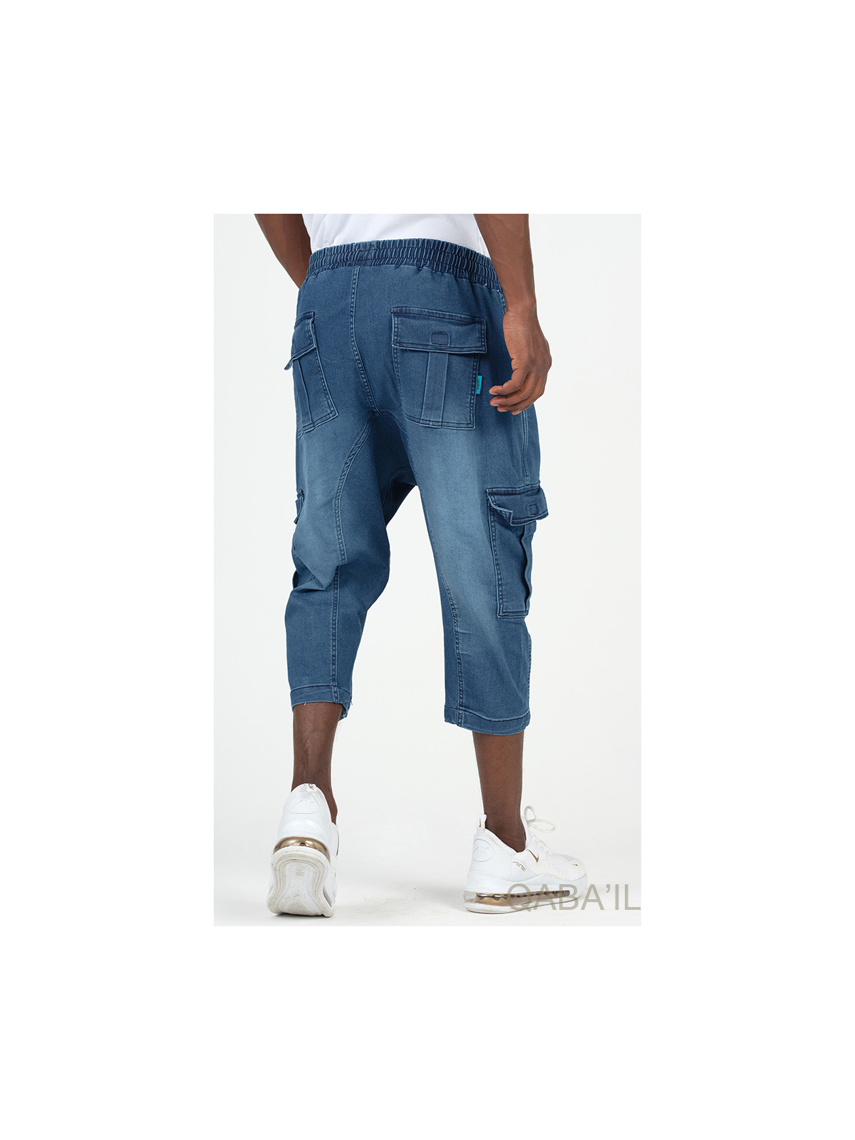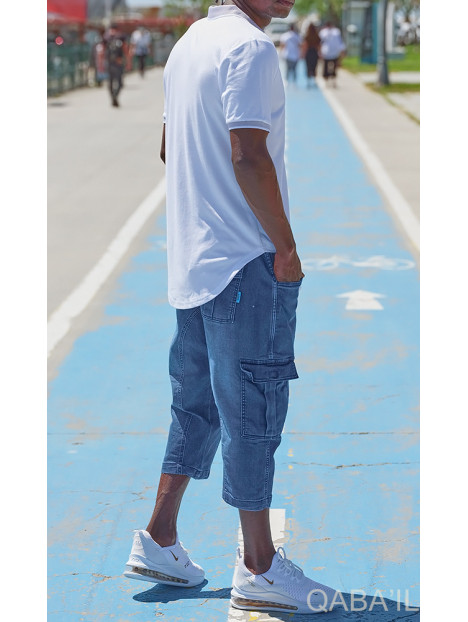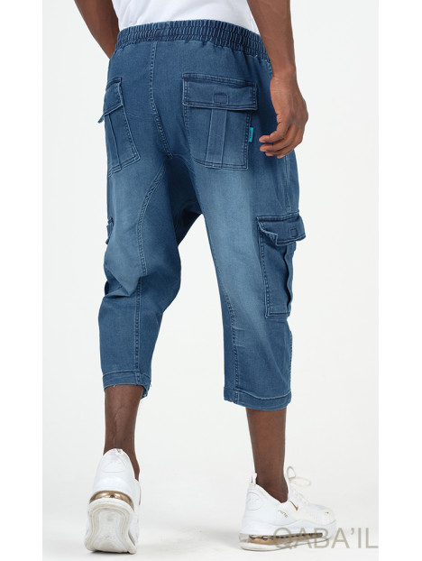 Cargo court jean stretch 9114 bleu délavé - Qabail