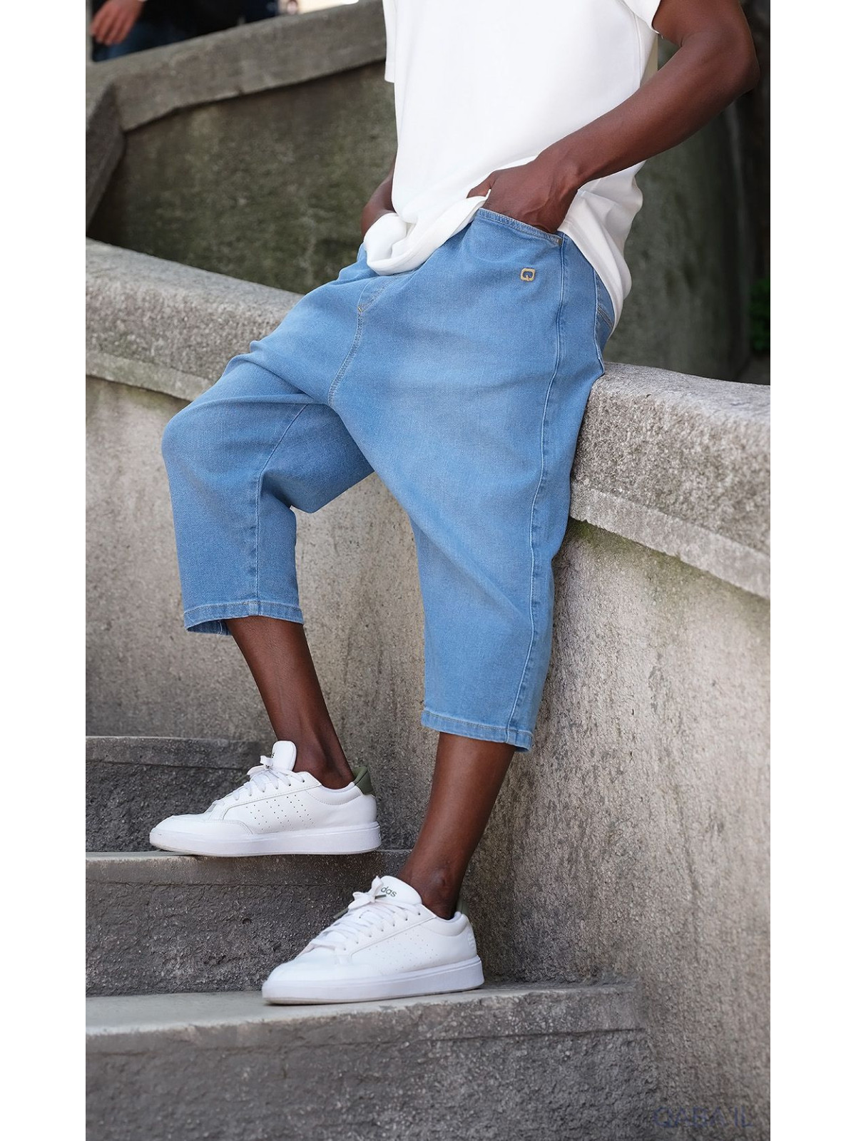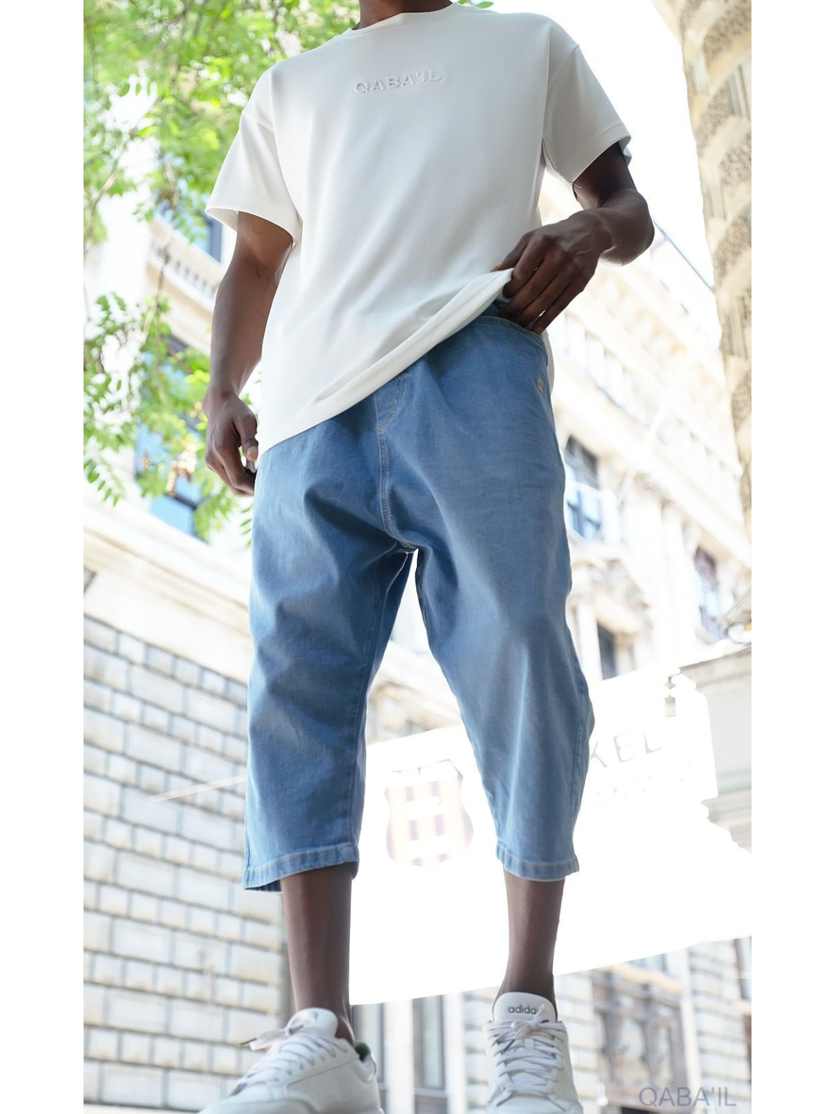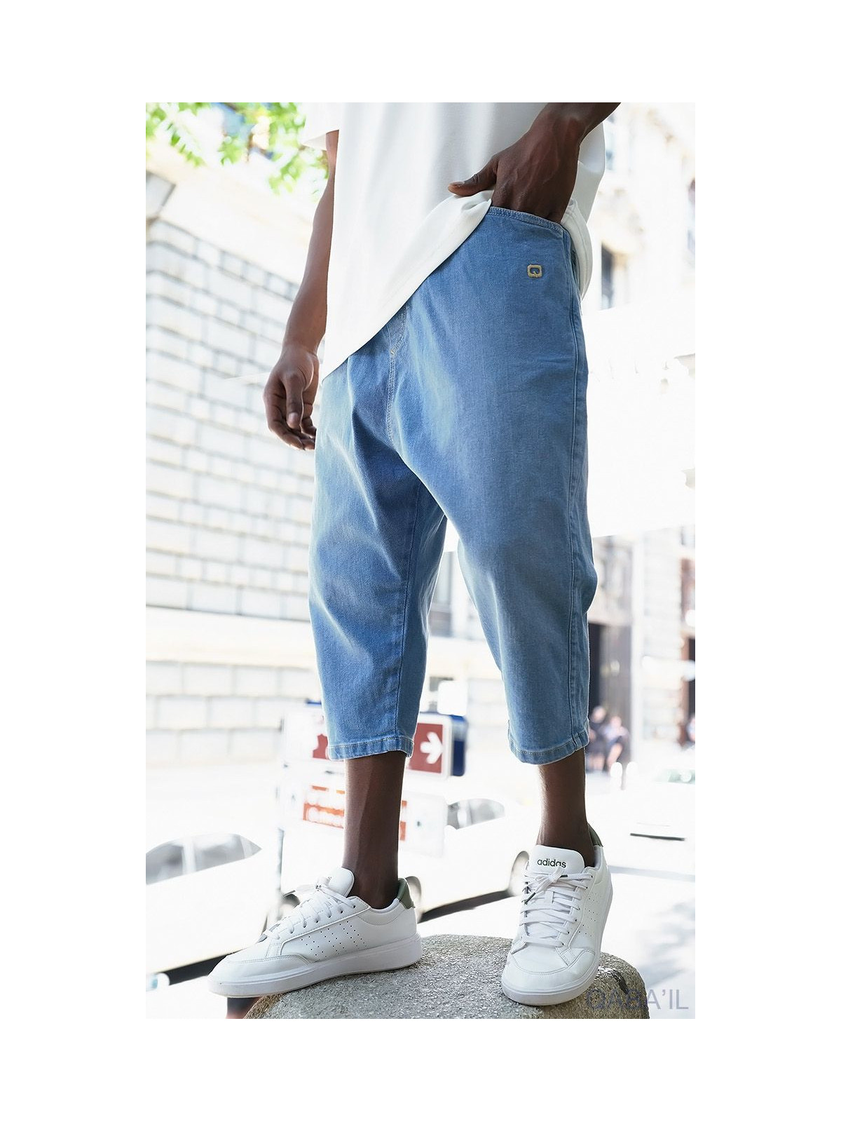 Sarouel bermuda jean stretch 5211 bleu clair - Qabail