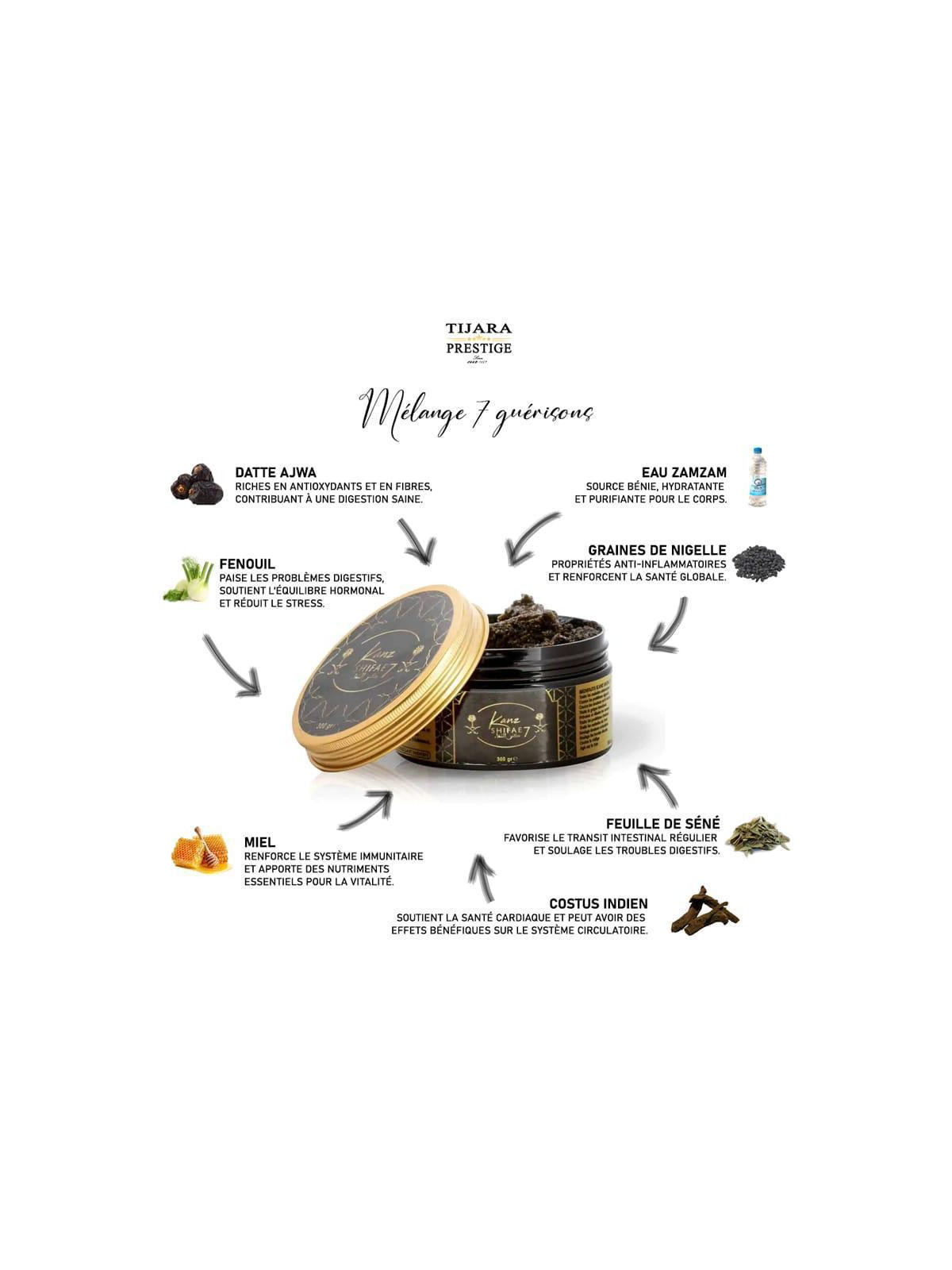 Cette formulation unique représente bien plus qu'un simple remède. Elle réunit en effet des ingrédients plébiscités par le meilleur des hommes, à savoir le messager d'Allah. Pour obtenir ce mélange bénéfique d'un point de vue thérapeutique, chaque ingrédient a été sélectionné avec soin pour ses propriétés spécifiques.